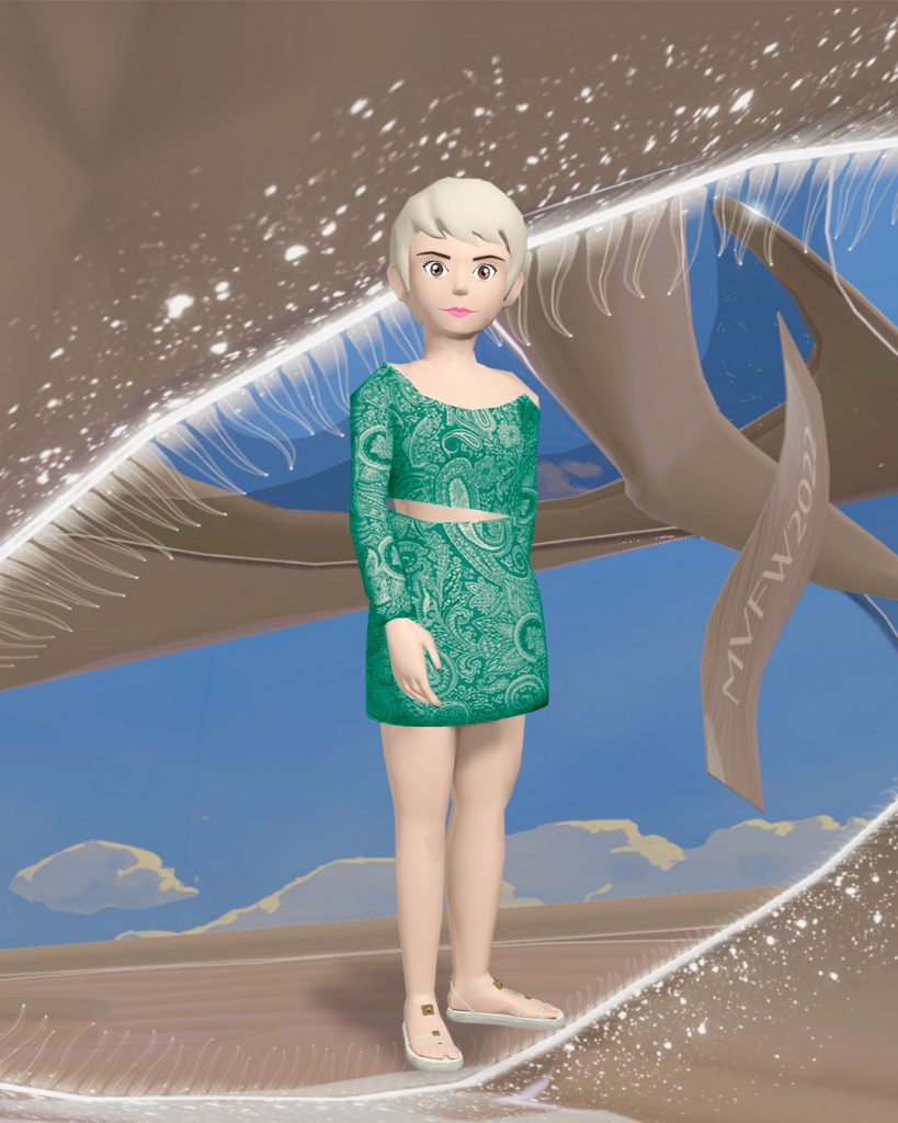 Il fashion show si è svolto nel cuore del Luxury Fashion District di Decentraland, dove ETRO ha aperto anche il suo primo pop-up store per consentire agli utenti di acquistare la collezione atterrando dalla passerella virtuale direttamente su etro.com. I clienti potranno giocare con i capi e gli accessori, disponibile gratuitamente, per vestire i propri avatar nel metaverso.
