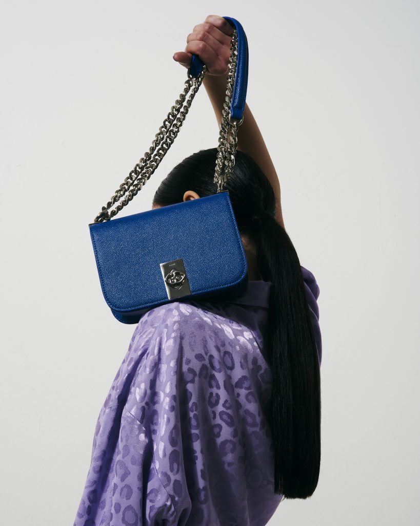 Mentre la Just Bag, dalla forma trapezoidale con manico bombato e tracolla removibile. Compatta ed elegante, ha la chiusura a nottolino Double Love anche questa disponibile nella versione trama saffiano, nei toni crema e rosa e nella versione nera effetto spazzolato.