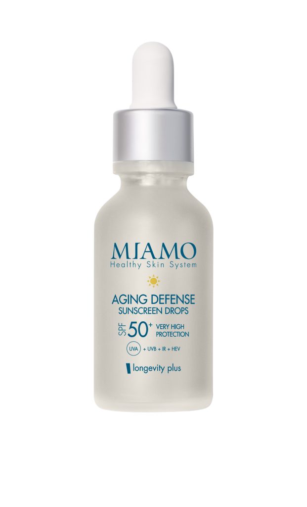 Frutto di lunghi e accurati studi sul campo, il laboratorio Miamo presenta i nuovi SUN DROPS: non una classica linea solare ma due sieri funzionali specificiricchi di attivie con SPF50+,che garantiscono protezione dai raggi UVA e UVB, IR, luce blu contrastando le principali cause di aging precoce e macchie cutanee.