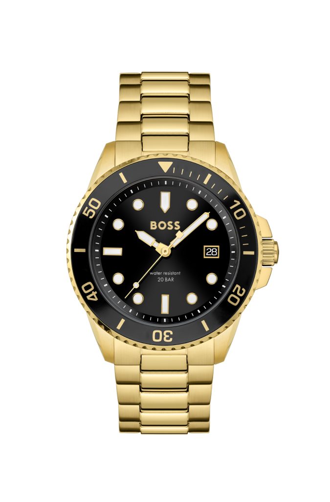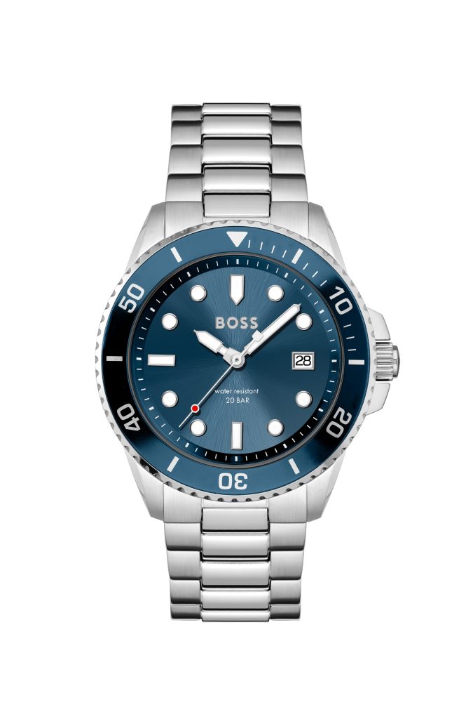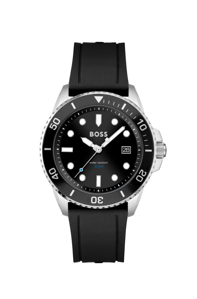Il must have della collezione 2022 è il modello Boss Ace della Sport Lux Collection, un orologio dedicato a un uomo sportivo che non teme di apparire tale, anche nei contesti più eleganti. L’essenza perfetta dello spirito di BOSS è racchiusa nel modello a tre lancette con funzione datario, che vanta un’impermeabilità fino a 20 bar. Subacqueo ma di classe, grazie al dialogo sapiente tra geometrie lineari e curve che ne caratterizza il design, su cui spicca la lunetta girevole unidirezionale e gli indici luminescenti.