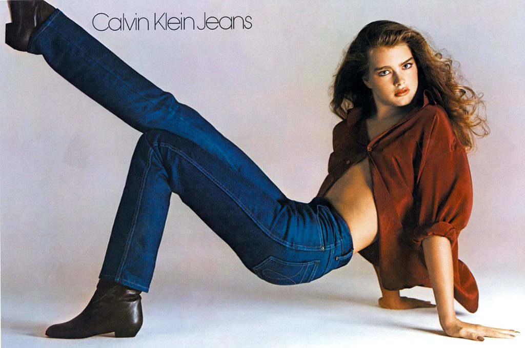Nel 1976 è Calvin Klein a portare in passerella un paio di blue jeans. Grazie alla campagna promossa dall’attrice Brooke Shields, i pantaloni in denim diventano un capo ultra sensuale da indossare sia per un look casual sia per un’occasione più elegante.
