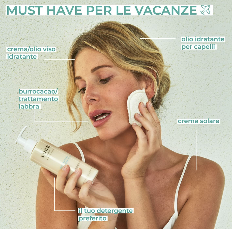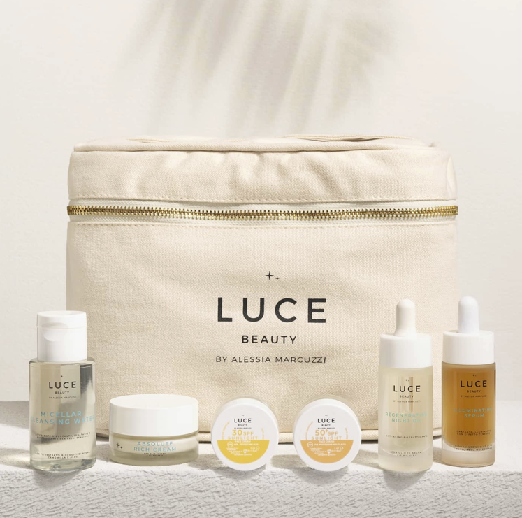 La famosa presentatrice/ influencer italiana Alessia Marcuzzi crea la linea Luce Beauty dedicata alla skincare volta a promuovere l’unicità di ciascun individuo, prendendosi cura della propria pelle e della bellezza naturale. I prodotti sono confezionati in un packaging riciclabile, sono totalmente Made in Italy, cruelty free e adatti anche alle pelli più sensibili.