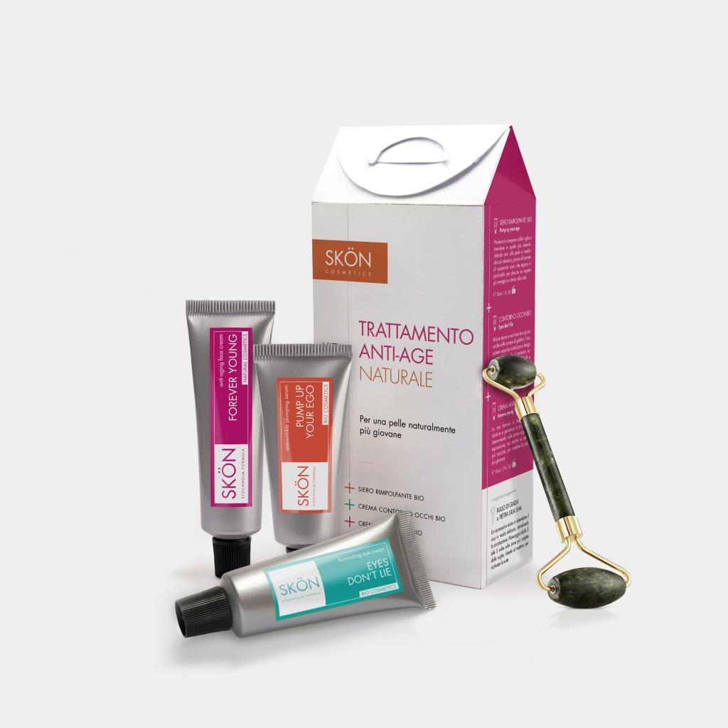 Skön propone Il KIT ANTI AGE BIO per un trattamento mirato e completo + un rullo di giada per completare il massaggio del volto, in omaggio: