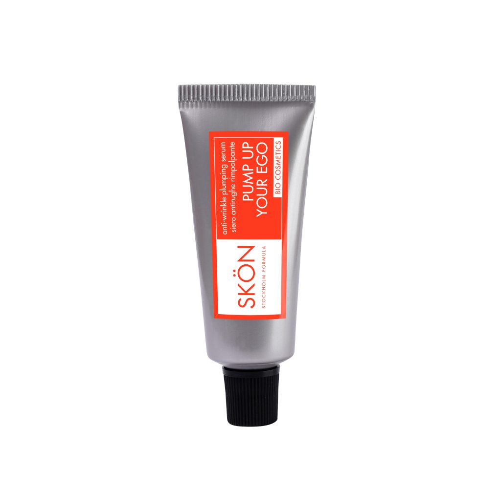 PUMP UP YOUR EGO – Siero antirughe rimpolpante. Rimpolpa e dona tono alla pelle spenta e bisognosa di elasticità, grazie all’azione dell’estratto di saponaria nana, ingrediente rassodante e riempitivo. Il siero agisce in profondità per donare un aspetto subito più energico e tonico alla cute. Ha la funzione specifica di prevenire la comparsa delle rughe e intervenire su quelle già presenti. Formato 30 ml.