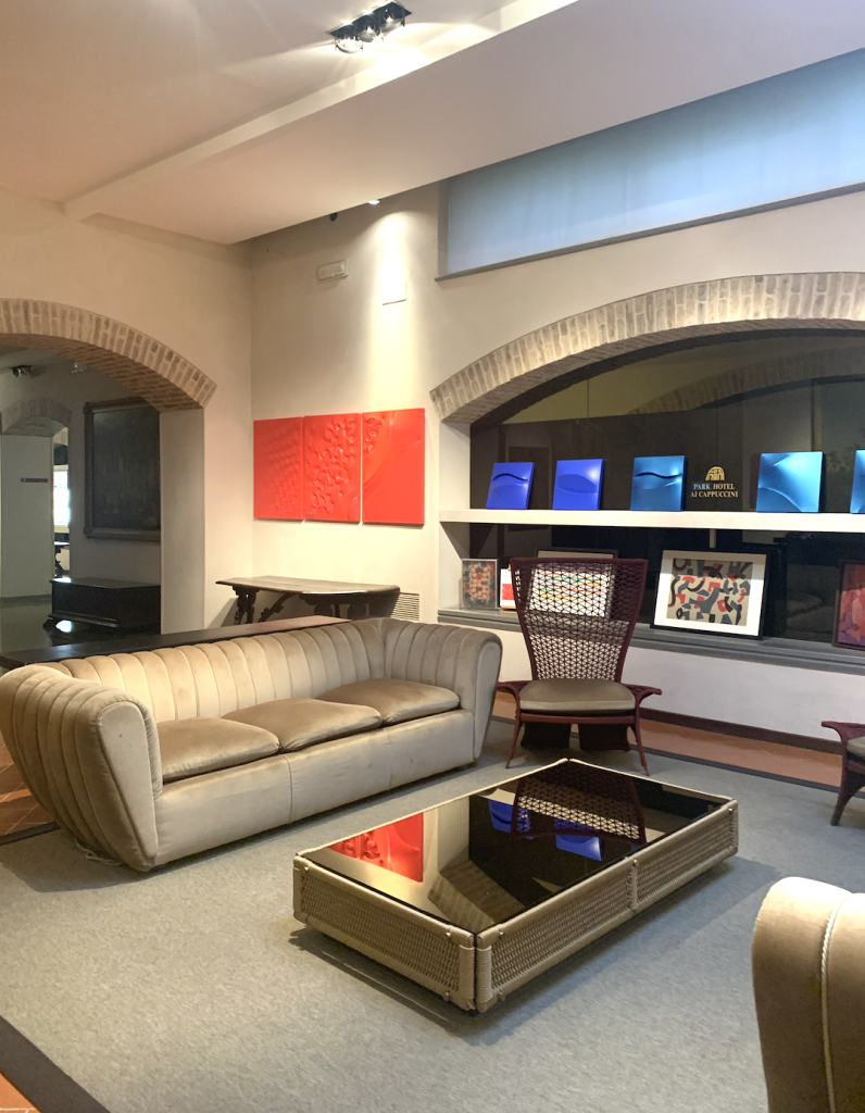 Nelle sale si possono ritrovare dipinti di Nelli Ottaviano rappresentanti San Cristoforo datati 1420 e provenienti da Palazzo Beni; sculture in cemento e grafite dell’artista statunitense Beverly Pepper; quadri di natura rurale di Emilio Scanavino del 1974; vasi di ceramica Gualdo Tadino e Rometti; oltre ad uno spazio totalmente dedicato all’arte contemporanea dove trovare ben due opere di Arnaldo Pomodoro e di Giuseppe Capogrossi, padre anche del simbolo di Park Hotel Ai Cappuccini.