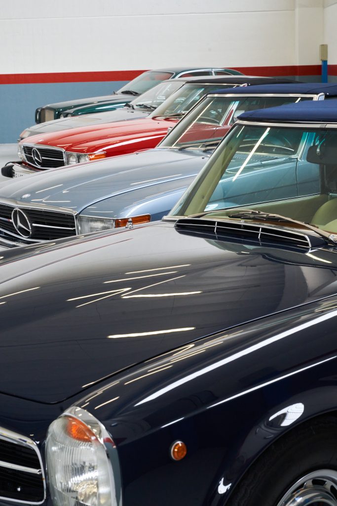 Il grigio ferro l’hanno pensato per questa 560 SL, comprata a Cape Code nella villa accanto a quella dei Kennedy, importata nel 2011 e realizzata appositamente per il mercato americano; io l’ho voluta rossa con gli interni color dattero, perchè quando ero più giovane c’era la serie televisiva Dallas di cui ero appassionato e questa era proprio la macchina che usavano nelle scene principali. La 420 SL Mercedes, europea, viene da Montecarlo, l’ho comperata da un amico, è una serie prodotta in poche unità rispetto al totale, ne hanno fatte 2000.