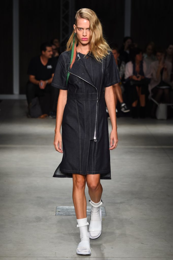 Tessuti informali e maschili come il denim si abbinano ai più delicati pizzi macramè e crépon, muliebri, femminili.