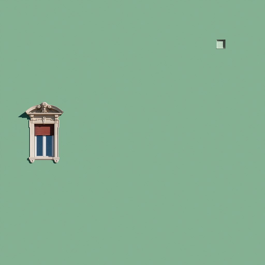 His windows, true protagonists, open, closed, shut, leave room for imagination. What lies behind that glimpse, beyond the curtains? A family having dinner, busy workers, a solitary man?