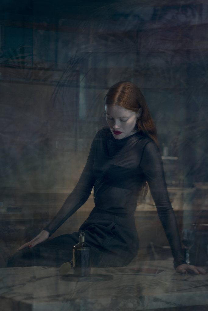 Nell’oscurità intima di una stanza, il tempo sembra sospeso, fumoso come in una pellicola noir, seguiamo una donna che lascia una sola forma di pensiero: il rosso.