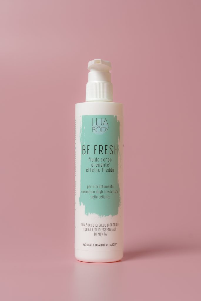 BE FRESH è un fluido corpo che dona un immediato effetto freddo studiato per alleviare la sensazione di gambe stanche e pesanti.Una formula delicata dalla texture in gel per donare immediato senso di freschezza e leggerezza senza ungere la pelle. Formato: 250ml La formula di BE FRESH è studiata per donare un effetto freddo immediato che tonifica la muscolatura, elimina il gonfiore, migliora la circolazione e aiuta a drenare i liquidi in eccesso. Il fluido è studiato per chi soffre di gonfiore e fragilità capillare, chi trascorre molte ore in piedi e soffre di gonfiore e pesantezza alle gambe. E’ ottimo dopo l’allenamento come trattamento crioterapico per rigenerare muscolatura, cute e rete capillare. Tip! Per un effetto ghiaccio conserva il trattamento in frigorifero! BE FRESH è’ formulato a base di succo fresco di aloe vera biologico che nutre, rassoda e illumina la pelle grazie alle vitamine e i minerali contenuti. L’estratto di edera e il mandarino migliorano la funzionalità del microcircolo, rafforzano le pareti capillari e aiutano a prevenire e combattere gli inestetismi della cellulite. La menta dona alla formula l’effetto freddo che aiuta a tonificare e a sgonfiare le gambe.