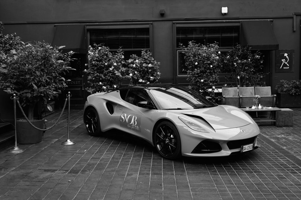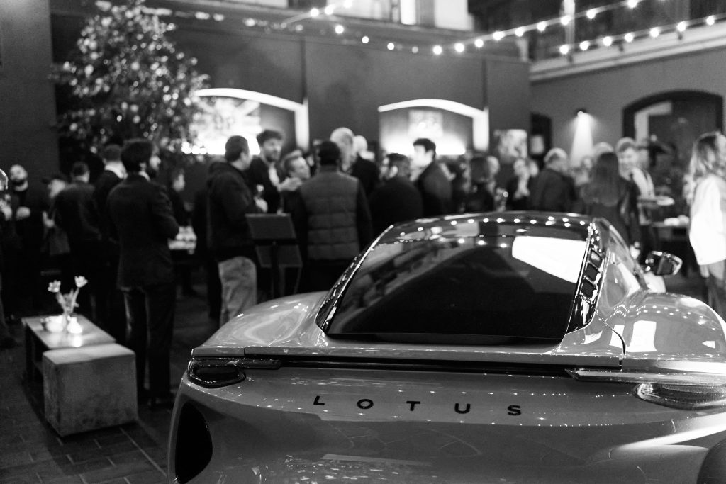 In esposizione nel cortile del prestigioso The Doping, una Lotus Emira Turbo First Edition 365cv, una vera auto sportiva che racchiude l’eredità dell’icona Lotus, leggerezza, prestazioni e dinamicità.