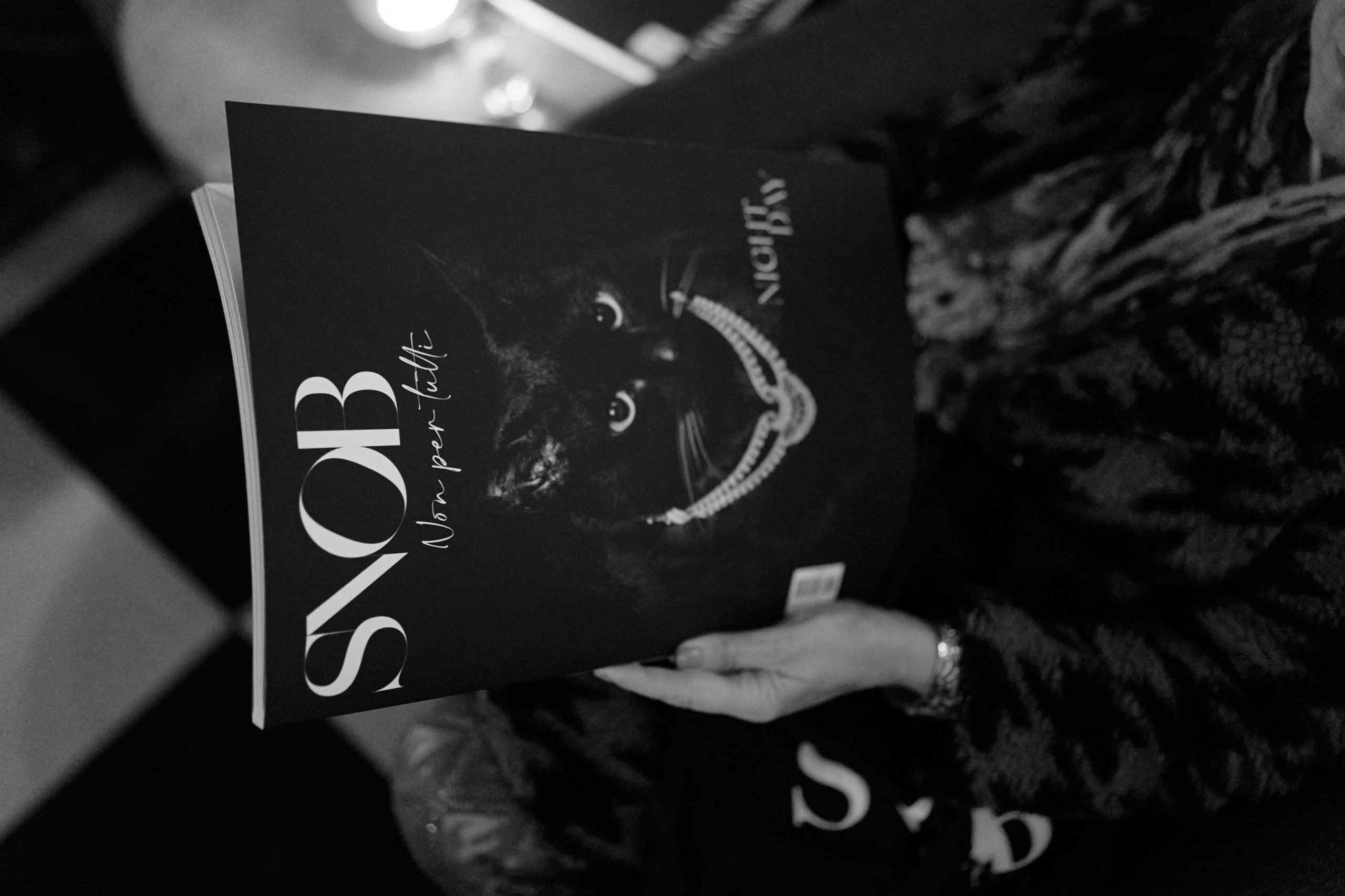 SNOB ha presentato per l’occasione le 3 cover cartacee dedicate rispettivamente a Gianmarco Saurino, attore impegnato con la serie kolossal “Kabul” – ad Ema Stokholma, poliedrica presentatrice, conduttrice radiofonica, scrittrice – al vero protagonista, il gatto nero che indossa un collier di diamanti della Gioielleria Pennisi.