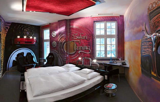 Tutte le camere sono arredate secondo un gusto e uno stile Bauhaus e seguono decorazioni e installazioni che ricordano il mondo automobilistico.