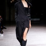 Due sono gli elementi che disegnano la collezione: il total black e le linee abbondanti dei capi, quest’ultimi, voluminosi a dismisura e destrutturati.
