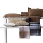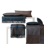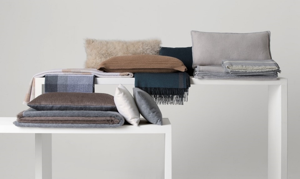 Un design ricercato e funzionale distingue gli oggetti proposti: i tessuti pregiati di Agnona caratterizzano una collezione raffinata ed esclusiva, che si focalizza principalmente sul bed dressing e sui filati preziosi. La camera da letto acquisisce stile e charme, grazie alle tre diverse interpretazioni di bed dressing: dalla vaporosa Alpaca Double per coperte, plaid e cuscini nei colori taupe e grey, con una gradazione di kale, al finissimo Cashmere di una coperta matrimoniale con struttura tridimensionale, rifinita con punto cavallo, da abbinare a un cuscino, e un plaid realizzato con una lavorazione jacquard a spina di pesce bicolor bianco/grigio, fino al Camel delle coperte matrimoniali coordinate e dei cuscini e plaid in jacquard con motivi a quadri dégradé. Completa la serie un prezioso cuscino in montone e cashmere.