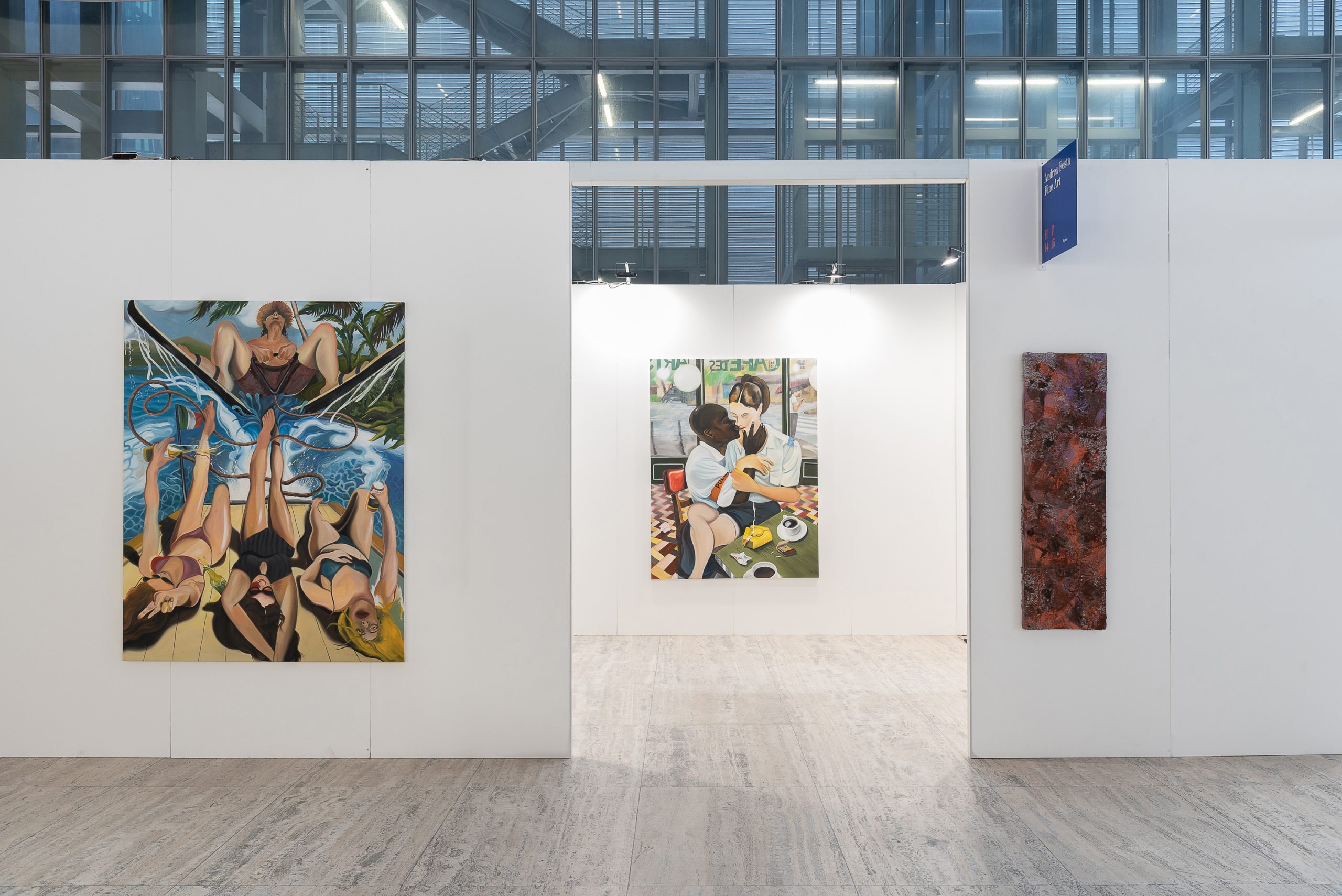 Davide Quartucci, Jade Van Der Mark, Yann Leto. La Home Gallery della capitale, nonostante il giovane gallerista Andrea Festa sia originario di Torino, porta in fiera pittura figurativa raffinata. Le tele dello spagnolo Yann Leto si notano per il carattere sovversivo dei soggetti di natura socio-politica e per una pittura densa, fluida e portentosa. Il giovane Davide Quartucci porta tre dipinti dall’atmosfera luminosa e grottesca, protagonista un marinaio strampalato e naive. Jade van der Mark, caratterizzata da una pennellata abbondantemente materica, sceglie invece come soggetto i cosmetici e i prodotti della società metropolitana consumistica.