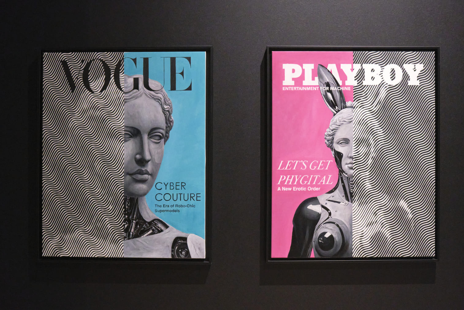 La mostra prosegue con l’ultimissima serie Future Magazine. Celebri copertine del domani, come numeri zero di una rivista ancora inesistente, in cui le protagoniste non sono più modelle o celebrità, ma umanoidi levigati, algoritmi di bellezza. Le figure appaiono come icone di un futuro prossimo, reliquie di una civiltà che ha delegato la propria immagine alla macchina. L’artista trasforma la superficie lucida della cultura pop in uno specchio critico del presente, dove la distinzione tra naturale e artificiale si dissolve in un’estetica dell’iper-reale. Attraverso questa serie, Andrea Crespi invita a una riflessione profonda sull’umanizzazione della macchina e la meccanizzazione dell’uomo. Più rendiamo la tecnologia simile a noi, più le concediamo di sostituirci.