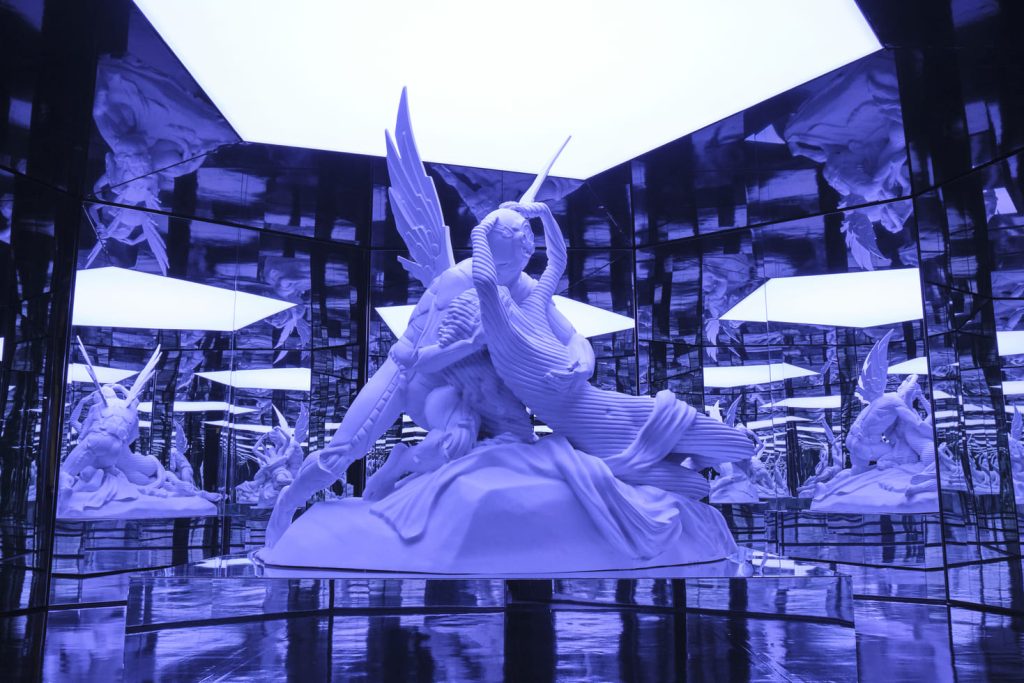 Dal braccio robotico agli ambienti immersivi in cui l’Amore e Psiche di Canova si declina in chiave futuristica – umanoide, moltiplicandosi in un gioco infinito di specchi, passando attraverso dipinti a olio che incontrano ipotetici furti d’identità hacker, sculture di nuove Veneri, avveniristiche Nike di Samotracia e video installazioni. Dal 23 ottobre 2025 al 25 gennaio 2026, negli spazi post-industriali della Fabbrica del Vapore di Milano, prende forma Artificial Beauty di Andrea Crespi: oltre trenta opere per un percorso articolato e multi-linguaggio che indaga la metamorfosi della bellezza tra il classico e l’AI.