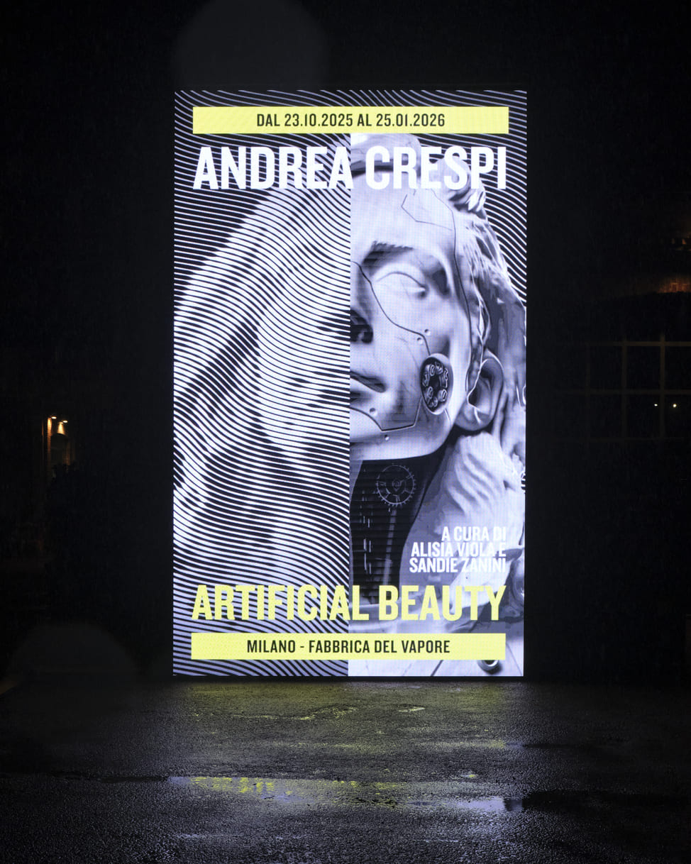 Dopo le presenze alla Triennale di Milano, al CAFA Art Museum di Pechino, al MAGA, a Times Square e ad Art Dubai, Andrea Crespi arriva a Milano con la sua prima grande esposizione istituzionale – curata da Alisia Viola e Sandie Zanini e co-prodotta da Fabbrica del Vapore e Comune di Milano con il patrocinio di Regione Lombardia. Un corpus di opere site specific che indagano il concetto di bellezza, osservato oggi nella sua trasformazione più radicale: non più armonia delle forme, ma territorio di sperimentazione e campo di tensione continua tra fisico e digitale, umano e macchina, emozione e algoritmo.