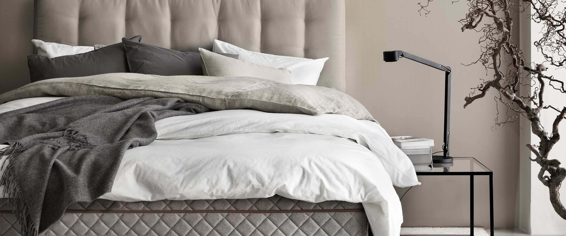 Protagonista della zona notte è il letto Duxiana 3003, best seller del brand svedese, insieme alla testiera del marchio di mobili giapponese Ariake, progettato da Gabriel Tan, direttore creativo di Ariake. Realizzata in legno Hinoki giapponese, questa testiera si chiama ‘Yasumi’ che in giapponese significa “riposo”. Hinoki è la conifera più venerata del Giappone, rinomata per la sua bella venatura del legno chiaro e la fragranza calmante. L’aroma di Hinoki è il risultato dei suoi Phytoncides naturali, rilasciati per proteggere da batteri e organismi nocivi – e hanno una serie di benefici, dalla promozione del rilassamento, calmando il sistema nervoso per scoraggiare gli acari che scatenano le allergie. Hinoki ha anche un effetto di purificazione dell’aria ed è resistente all’umidità e al marciume. L’intento progettuale era quello di coniugare queste già citate proprietà di Hinoki con l’alta qualità del sonno che i letti Duxiana forniscono, creando così una testiera che è meditativa ed elegante. La testiera si estende oltre la larghezza del letto, consentendo ai clienti di configurare il proprio comodino preferito sia con un tavolo a sbalzo di marmo Kolmården – una bella pietra svedese, oppure con un cassetto contenitore modulare disponibile in tre diverse altezze per adattarsi a quelle dei diversi letti Duxiana.