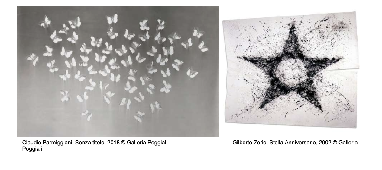 selezione di opere di Claudio Parmiggiani e Gilberto Zorio.