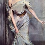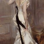 Boldini ci regala l’atmosfera che a noi è dato solo immaginare, siamo agli inizi del ‘900 e i salotti si colorano del vociare di donne dagli abiti fruscianti, dalle sete preziose che solo Boldini riesce a rappresentare con il pennello, ne possiamo godere la lucentezza e sentire il caratteristico strofinìo.