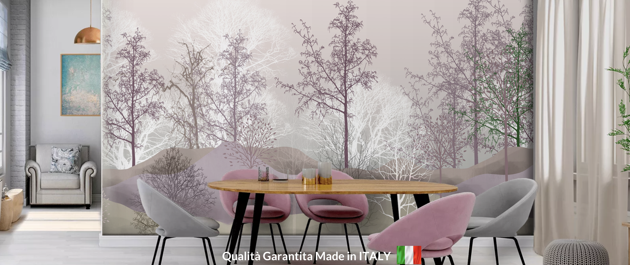 Le nostre carte da parati non contengono componenti chimici, sono interamente di cellulosa e tutte certificate; abbiamo da subito deciso di investire su un macchinario HP che consente di stampare senza solventi grazie a una tecnologia che si chiama Latex.