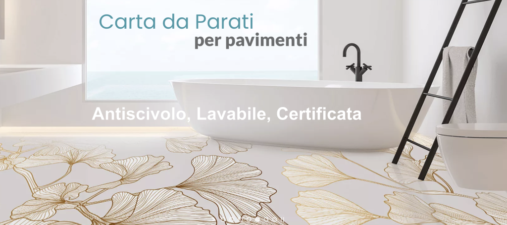 Sì, sono tutte lavabili e abbiamo anche una versione calpestatile, con un fondo adesivo da applicare direttamente sul pavimento. Questo nuovo e particolare tipo di carta ha un film protettivo in pvt e può essere lavata anche con solventi.