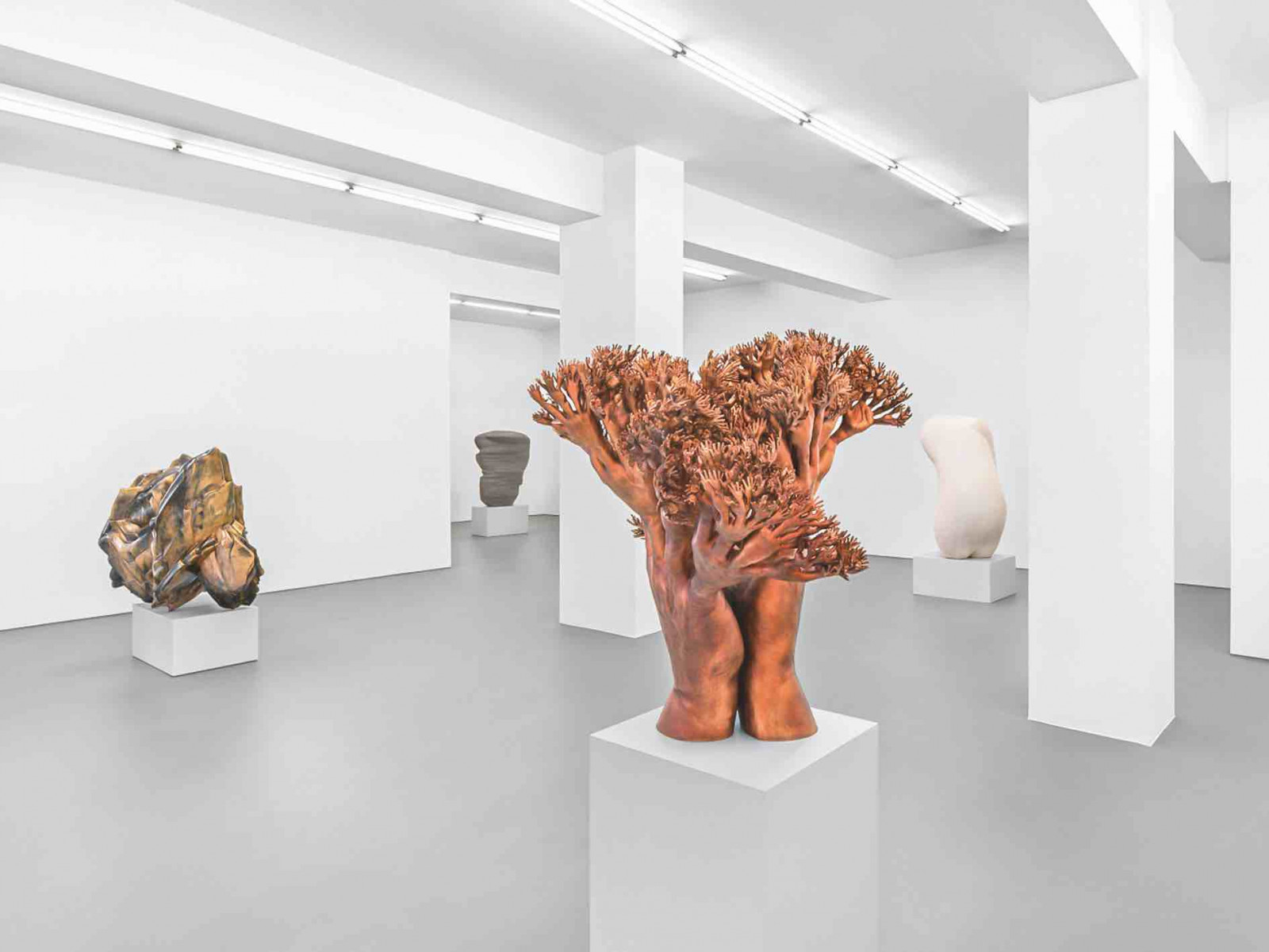 Tra gli artisti in mostra che saggiano le potenzialità dell’arte plastica attraverso l’impiego sia di elementi appartenenti alla tradizione sia di tecniche inusuali ci sono alcuni autori extraeuropei, capaci di far confluire nella fisicità della scultura la forza concettuale della loro ricerca. Ruben Pang, giovane artista di Singapore, riesce ad aggiornare uno dei più antichi materiali della storia dell’arte, la ceramica. In bilico tra figurazione e astrazione, le creazioni di Pang appaiono ai nostri occhi come corpi in metamorfosi, in cui il dinamismo racchiuso nella materia celebra la complessità dell’individuo. Lavori come The Phantom Throat (2018-2019) e The Hazard Star (2020) sembrano conquistare lo spazio circostante con le loro articolate forme sfuggenti e con i loro vividi colori, specchio di quella dissonanza che rappresenta le pulsioni emotive più profonde dell’uomo.