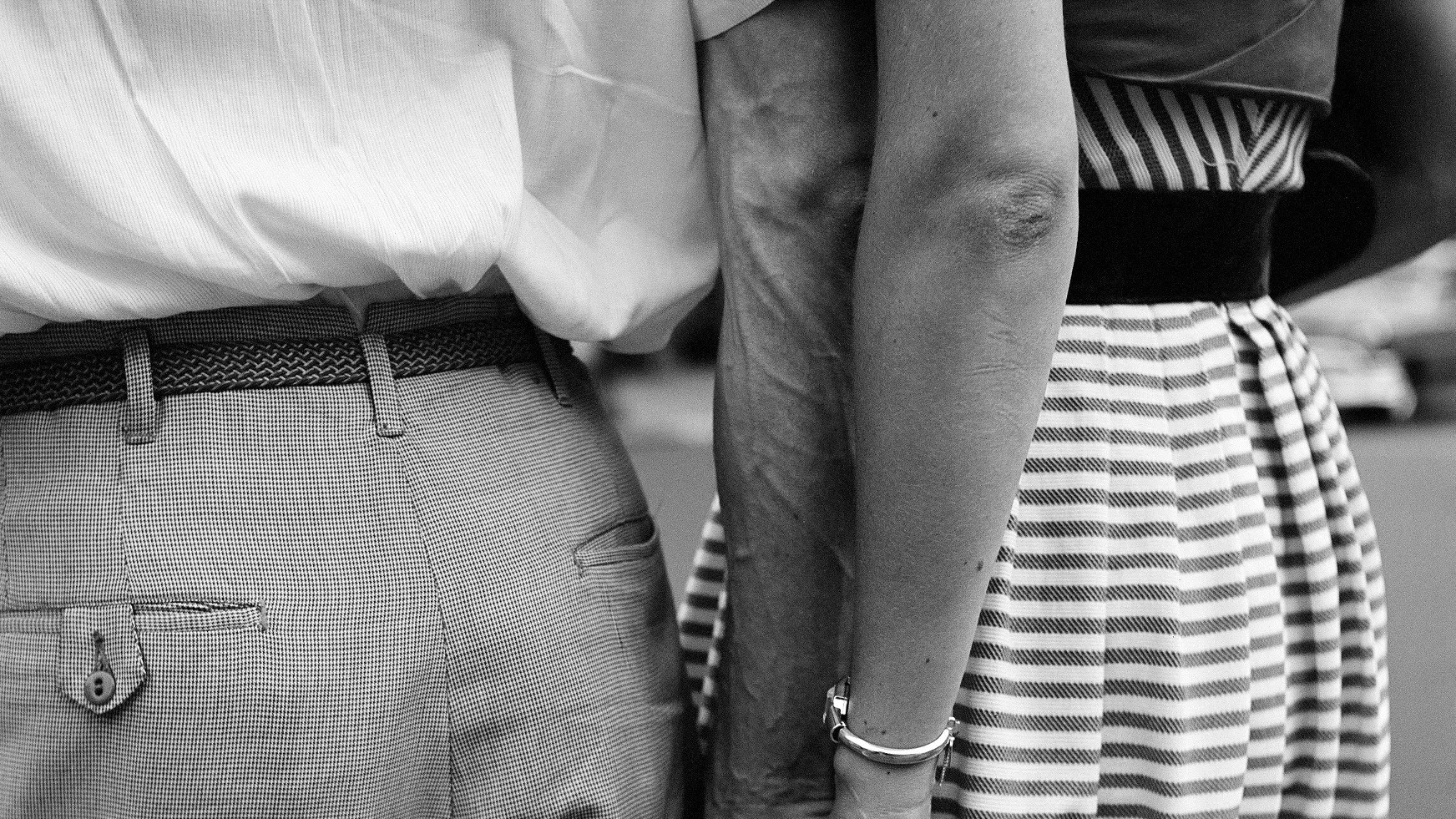 La strada era il suo teatro di posa, non c’è immagine che risulti banale, ogni composizione è scelta per caratterizzare il soggetto, un dettaglio, un gesto, una coppia che si tiene per mano, un bianco che offre delle monetine ad un nero, un edicolante assonato, una coppia di amiche con un collo di pelliccia in volpe un poco macabro, un’elegante signora che guarda lontano. Tutto ci parla con intensità della sua visione del mondo; lo fa senza giudicare, avvicina solo un poco lo sguardo attraverso la sua macchina fotografica, per farci guardare meglio, ma sempre con estrema delicatezza.