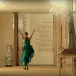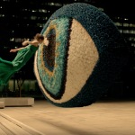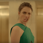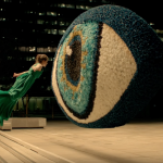 Il folle regista di “Her” e di “Essere John Malkovich“, non contento, trasforma le scene successive in un “videogioco da combattimento”: la Qualley lotta con un uomo e inizia a sparare all’impazzata, una forza che proviene dal suo stesso corpo fino a quando, uscita da teatro, vola all’interno di un enorme “occhio fiorato”, le note sono quelle delicate dei liuti giapponesi e riportano ai giardini orientali ma…il silenzio e la pace durano poco, perché il ritmo diabolico torna a farsi sentire, così come quegli occhi folli tornano a farsi vedere.