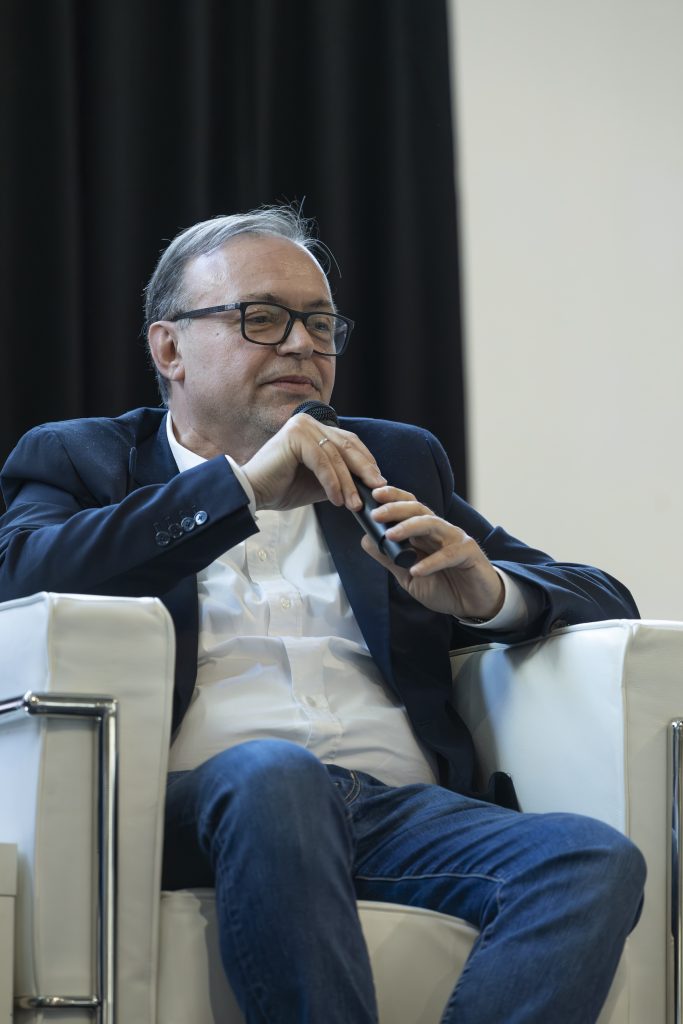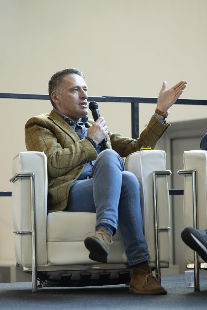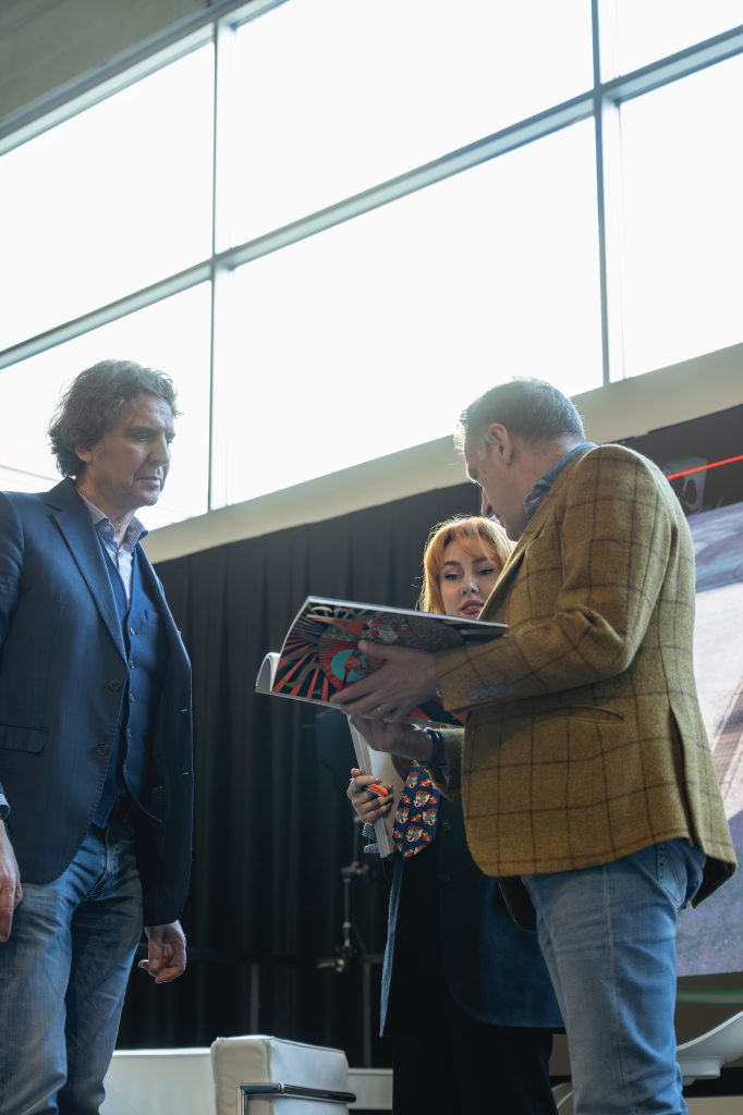 Il dialogo si è poi allargato al mondo dell’artigianato d’eccellenza con Simone Schedoni, presidente della storica azienda di pelletteria emiliana. «La nostra storia inizia nel 1880 ed oggi Schedoni collabora con alcune delle più prestigiose case automobilistiche al mondo – da Ferrari a Lamborghini, da Pagani a Bugatti, fino a Rolls-Royce e Bentley – realizzando creazioni in pelle completamente su misura. Ogni oggetto nasce come un pezzo unico, quasi un’opera d’arte, pensata per interpretare i desideri dei clienti più esigenti e audaci: tra loro collezionisti, artisti e personalità internazionali, dai Pink Floyd al re Hussein di Giordania».