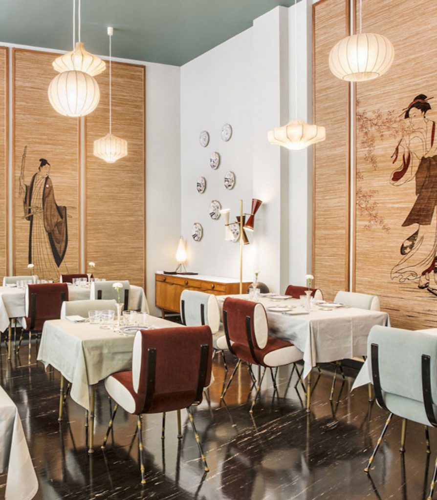 Il ristorante-cafè si offre come luogo di rappresentanza in una Milano che oggi esige meno rumore e più conversazione; qui gentiluomini coltivano il buon gusto e buone maniere perchè la mondanità è anche regola e saper viver bene. Ma se la qualità degli ospiti determina il nome del locale, L’Arabesque stupisce anche in cucina offrendo un menu’ alla carta di qualità con manicaretti di stampo italiano contaminati dalla cultura orientale, esattamente come negli arredi, il cui gusto dominante proviene dal Sol Levante. Una cucina che appaga vista e gusto, in perfetta sintonia con l’ambiente; riserbo e gentilezza fanno de L’Arabesque un progetto d’amore e di costume, dove virtù e costanza vengono premiati con la fedeltà della clientela.