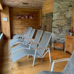 Due saune al suo interno, una Finlandese e un bagno profumato all’abete e agli aromi di montagna, un bagno turco, una doccia cromoterapica rivitalizzante, una mini piscina Jacuzzi e una panca pediluvio con sassi di montagna massaggianti.