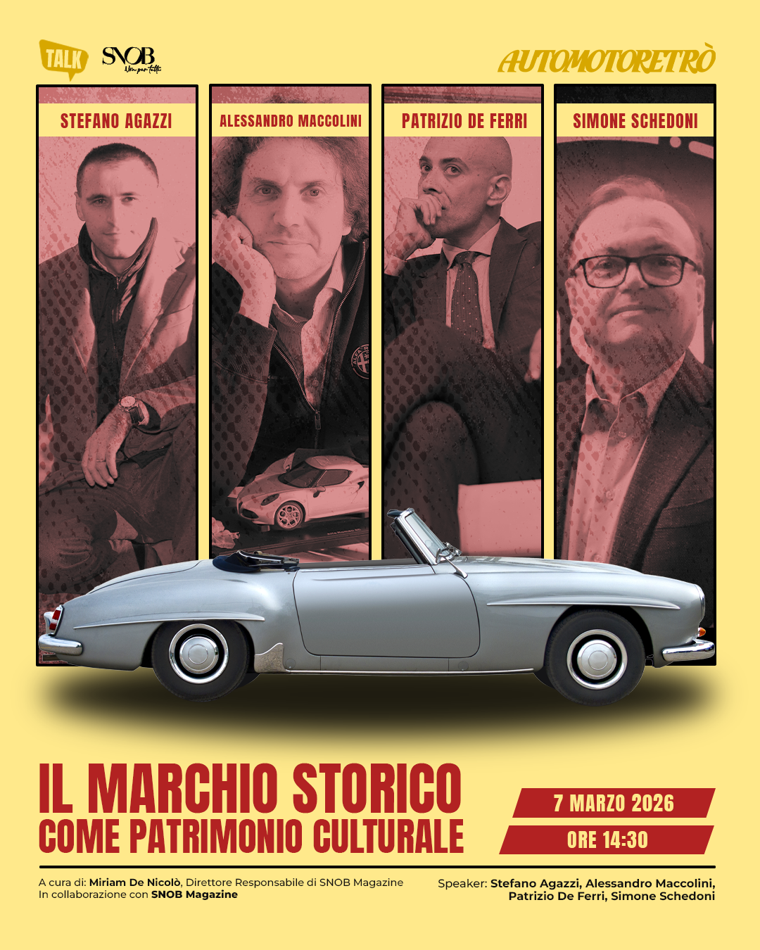 SNOB Magazine porta ad Automotoretrò quattro protagonisti dell’eccellenza italiana – al talk di sabato 7 marzo ore 14.30 – “IL MARCHIO STORICO COME PATRIMONIO CULTURALE“