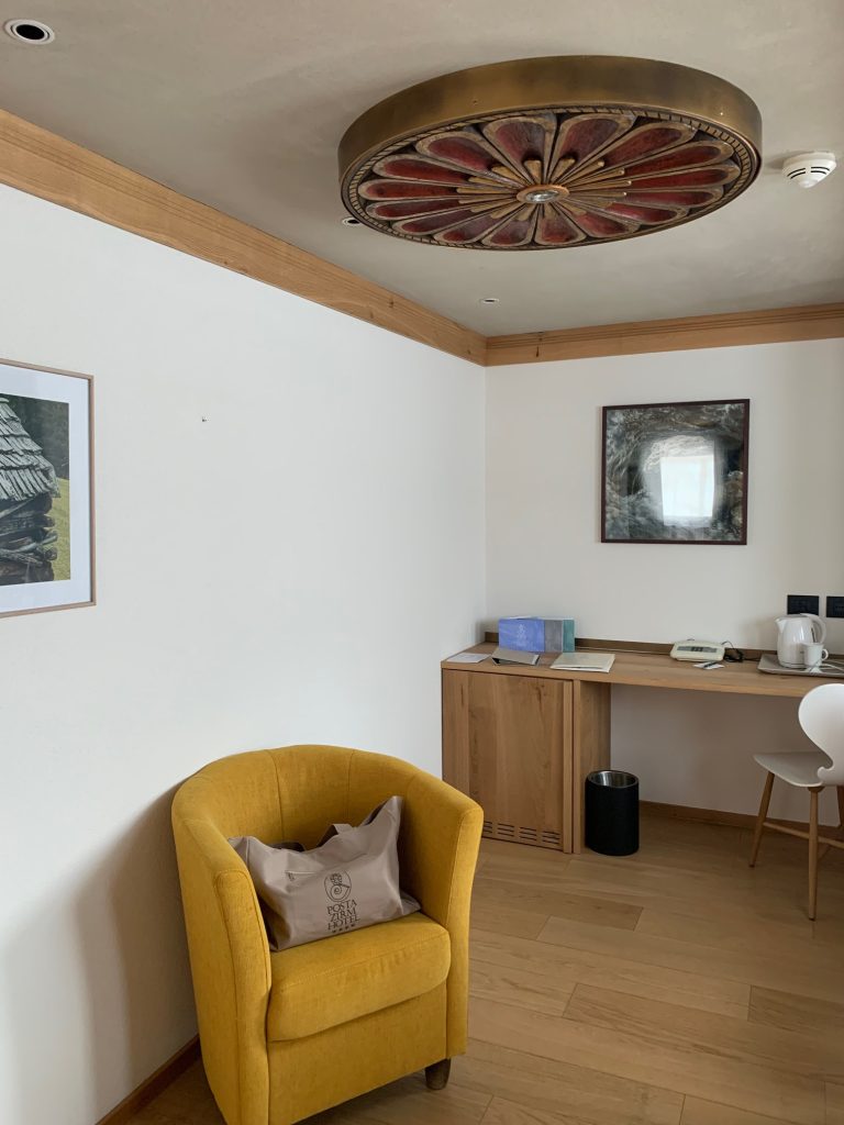 L’hotel ospita inoltre, durante la maratona delle Dolomites di cui Michil è Presidente, una grande esposizione di bike in un’ala che affaccia verso l’esterno.