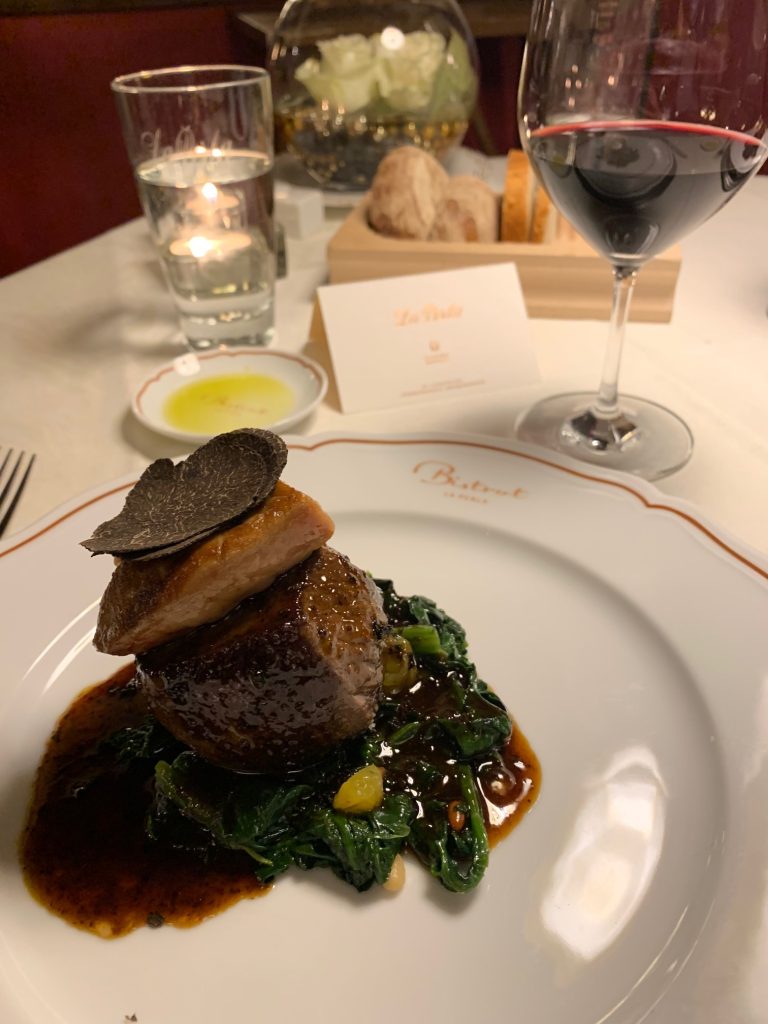 Nel Bistrot La Perla ogni sera un gruppo musicale si esibisce sulle note jazz, il servizio è eccellente, al cocktail bar il personale in camicia bianca e cravatta nera serve uno champagne cocktail con Bruno Paillard. Dal Menu consigliamo les escargot, non troppo agliate per fortuna, e un filetto di cervo con suo foie gras, uvetta, tartufo e salsa Rossini, una delizia per il palato.