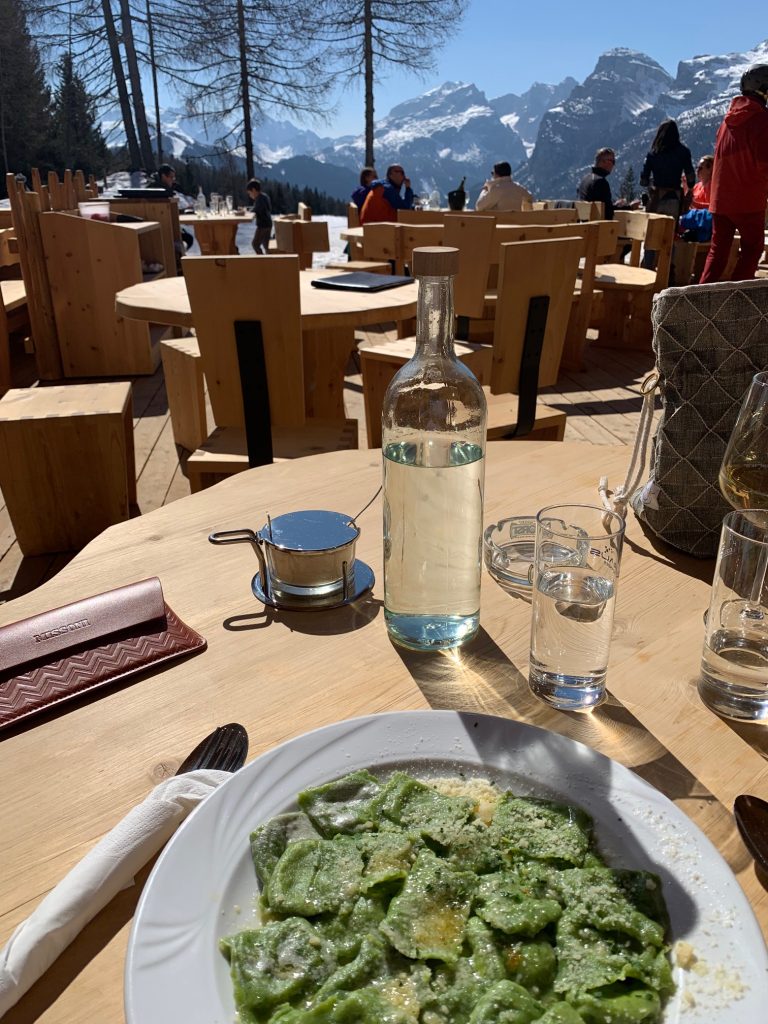 Godersi un pranzo sulla vallata è un’esperienza che difficilmente trova le parole giuste, soprattutto quando la qualità e l’amore per il cibo combacia con la perfezione della natura. E dalla natura il ristorante prende gli ingredienti per creare delle ricette deliziose, come il pino mugo mescolato alla ricotta e spinaci, il ripieno dei ravioli, piatto icona che con la loro amarezza e originalità non si farà dimenticare.