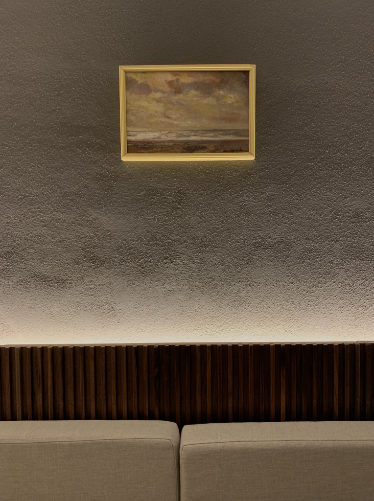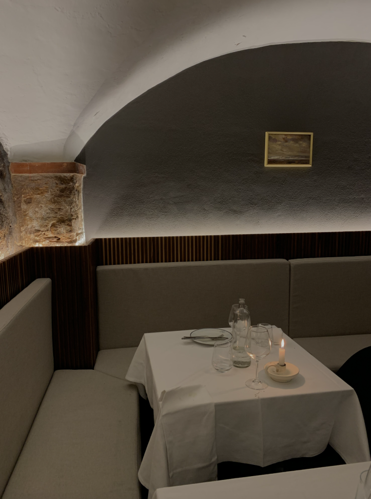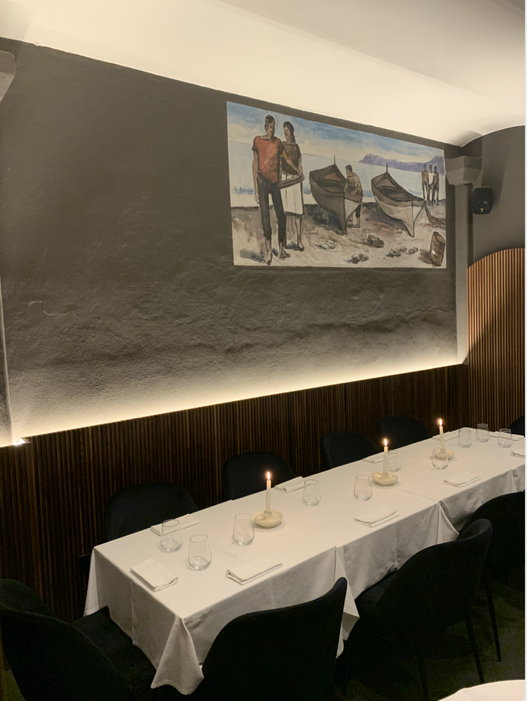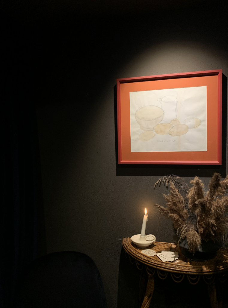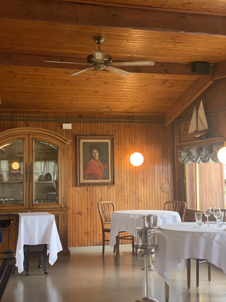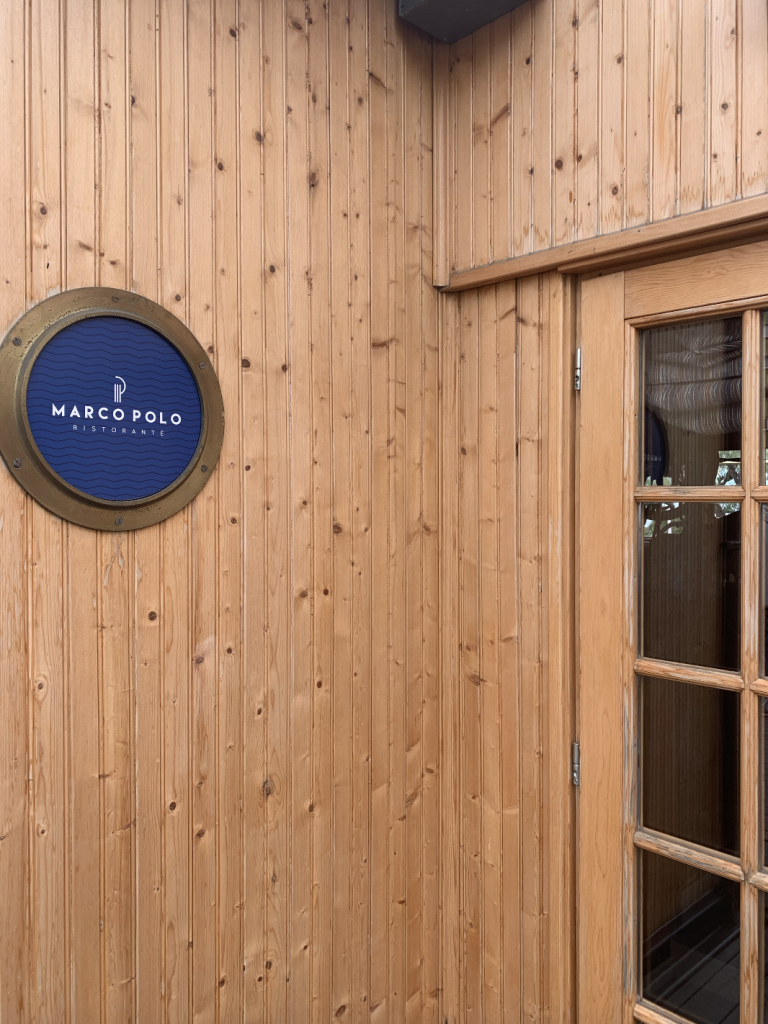 Accanto alla storica chiesa di Bordighera Alta, dove poter cenare a lume di candela, Locanda Marinai accoglie con un grande bancone che ha i colori del mare; le sale, progettate dall’interior designer Giacomo Cassarale, sono minimal, calde, accoglienti, circondate da una bellissima boiserie in legno noce canaletto, con l’idea di riprendere una perlinatura vintage ma dal tocco moderno. Sobrio ed elegante lo è anche nello stile il ristorante Locanda Marinai, che impreziosisce le pareti con piccole cornici al cui interno troviamo dei bijoux d’artista, come alcune opere di Domenico Pagnini, pittore bordigotto, o di Marie Serruya, artista concettuale parigina; ma più preziosa è la firma di Eugenio Morlotti, che vive il suo periodo artistico più prolifico proprio a Bordighera, un’aria che lo cambia, nello spirito e in pittura: