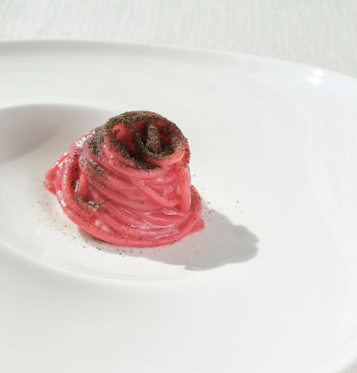 Gli spaghetti risottati con estrazione di fichi d’india, alla base anguilla cotta a bassa temperatura, parte superiore con polvere di fichi d’india disidratati e pane atturrato (che in dialetto siciliano significa abbrustolito) e finocchietto, sono il piatto sapido e deciso, dove il simbolo della sua terra fa capolino.