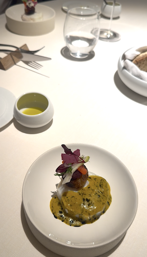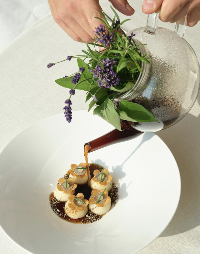 Il paninetto al sifone con tartare di manzo, maionese di ostrica e caviale Beluga eleva ulteriormente il registro, mentre i bottoni di pasta con crema di patate in doppia consistenza, crumble di tartufo nero, chips di patata e gel di limone ed erba cipollina mostrano la maestria tecnica nella gestione delle consistenze.