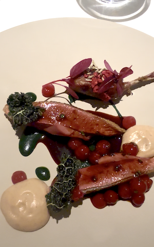 Il rombo a bassa temperatura su cipolla Borettana e verdure autunnali, completato da salsa di olio alla brace e zafferano, conferma la padronanza delle cotture. Il piccione in carcassa – petto cotto con le ossa per maggiore sapore, cosciotto prima a bassa temperatura poi rosolato – accompagnato da cremoso di castagna alla brace e cavolo nero (in chips e cremoso), è l’apice della serata: potenza e delicatezza in un solo piatto.