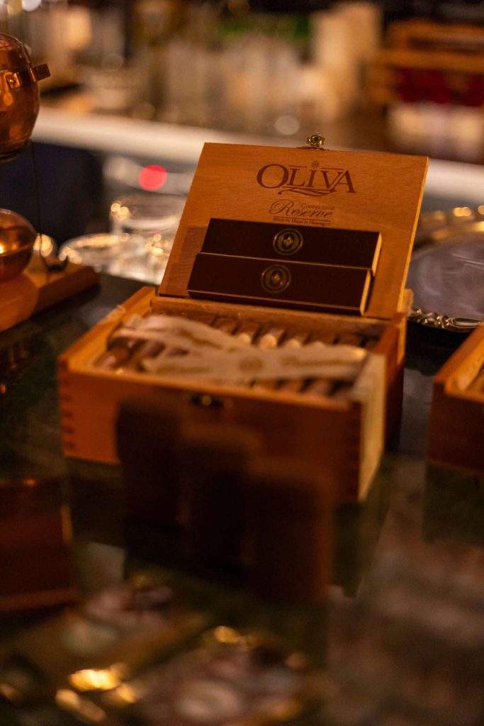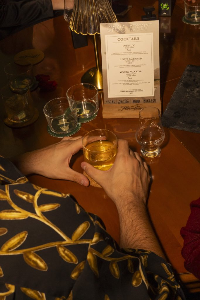 Momento ludico della serata, la gara all’ingrediente misterioso di “Bonjour Madame“, ispirato al famoso drink Hanky-Panky della barmaid Ada Coleman; un momento che ha unito creatività e intrattenimento rendendo gli ospiti protagonisti di un’esperienza unica e vincitori di profumi WDrink, bottiglie di Rum Flor de Cana, una collezione di Snob magazine, portasigari in pelle con sigari Oliva, testati in abbinamento con i drink della serata. Pierluigi Serravezza di Vandermarliere Cigars Family, ha portato la grande passione ed esperienza del brand noto per la produzione di sigari premium dalle miscele in stile cubano più corpose, Oliva Connecticut Reserve Petit Corona, una nuova combinazione morbida e avvolgente pensata anche per le fumate lente del pubblico femminile.