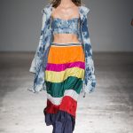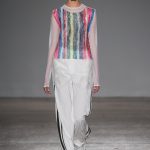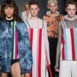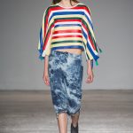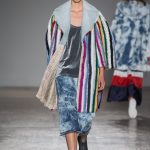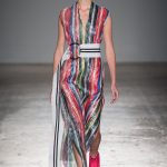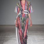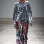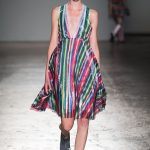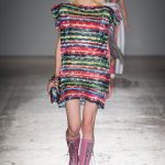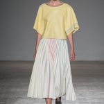 Sono le righe le vere protagoniste della collezione, sui long dress o sulle gonne ampie, accostate ai bomber azzurro cielo, che regalano un senso di leggerezza. Le plissettature sono architettoniche, i dettagli sportivi e i volumi over. La donna Burani è contemporanea e moderna e mixa abiti soffici come zucchero filato a ankle boots in ciniglia e mega cinture a segnare il punto vita.
