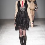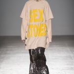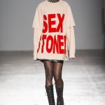 E allora dalla strada arrivano i maglioni finto-usurati, le t-shirt da indossare alle manifestazioni sulle libertà sessuali, le maxi platform in poliuretano stratificato, i giochi di sovrapposizioni che vedono il maxi cardigan sotto il vestito e la lingerie-pijama come dress code serale. E’ questo il trend per l’autunno-inverno 2017/18 di Cristiano Burani.