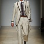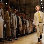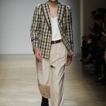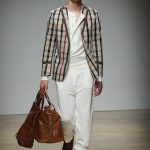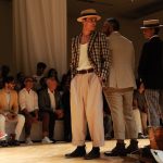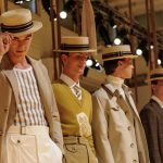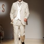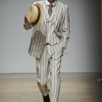 Da sempre la distinzione è forza in casa DAKS, soprattutto quando si parla di ricerca tessuti: pied de poule, lo spinato e rigature, varie window check e il famoso House Check, che rappresenta l’heritage del brand, cotone e naturalmente il lino irlandese. Non mancano nei dettagli borse, cinture e il tipico cappello da regata con il nastro colorato, che tanto mi rimanda a Venezia, a quello indossato da Tadzio, quel giovane fanciullo che fece gioire e patire l’autore Gustav “von” Aschenbach, quel Narciso dal sorriso ammaliante che trascinò lo spirito di Gustav dal barbiere per tingersi capelli e baffetti, gli stessi (finti) proposti in sfilata da Daks London.