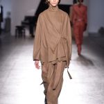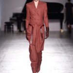 Grandi i contrasti, dalla giacche maschili voluminose e le vite strizzate, dalla delicatezza delle palette sabbia al blu scurissimo fino al bordeaux che ricorda i “muri” tanto criticati di Serra.