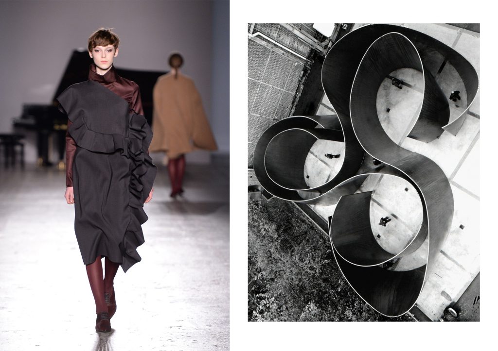 Sono forme, strutture, cubi, spirali, gli abiti della collezione Calcaterra per la stagione autunno/inverno 2017/18.
