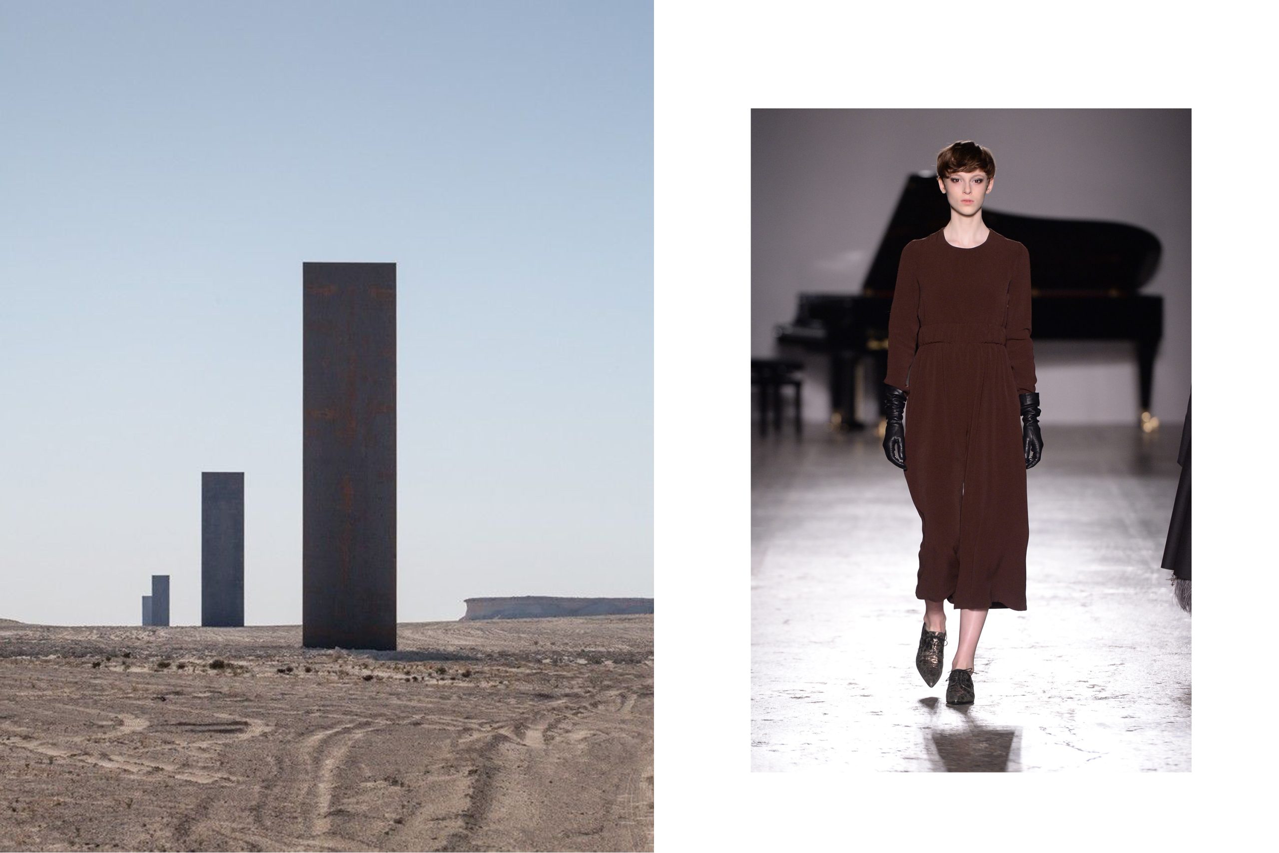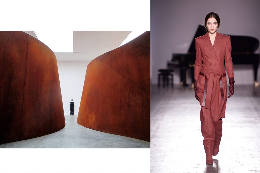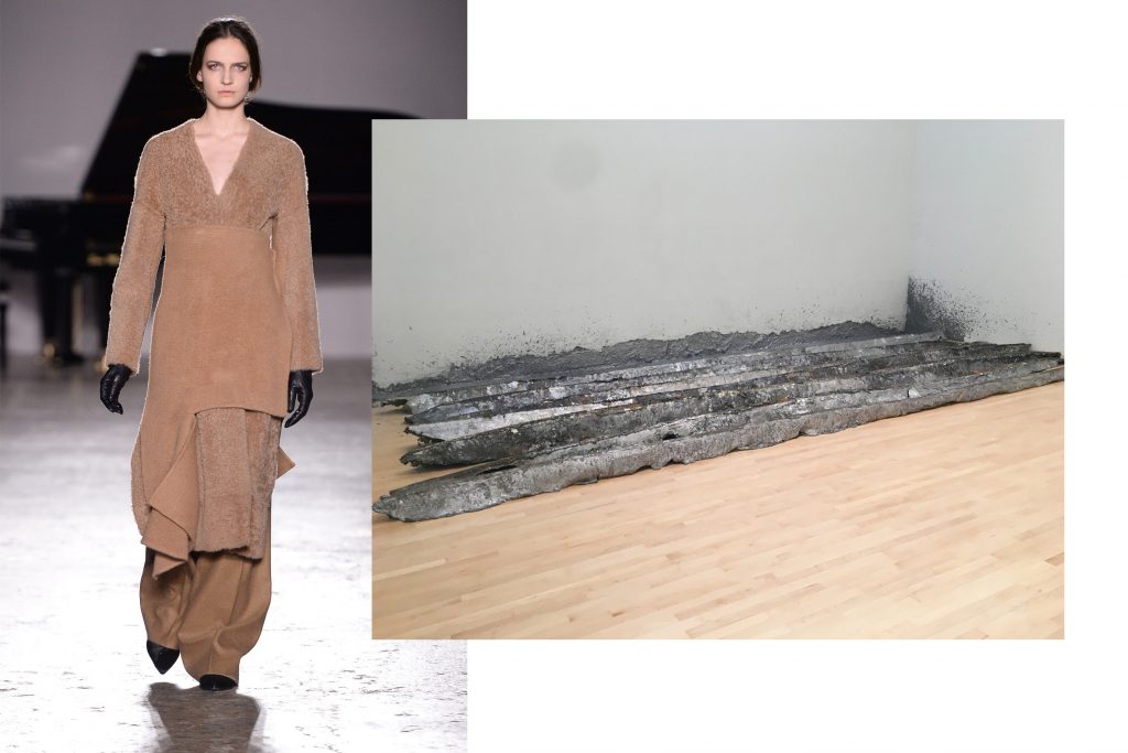Calcaterra si ispira per la collezione FW 17/18 alle opere di Richard Serra, artista statunitense in cui il prodotto materico diventa di fondamentale importanze nelle sue opere.
