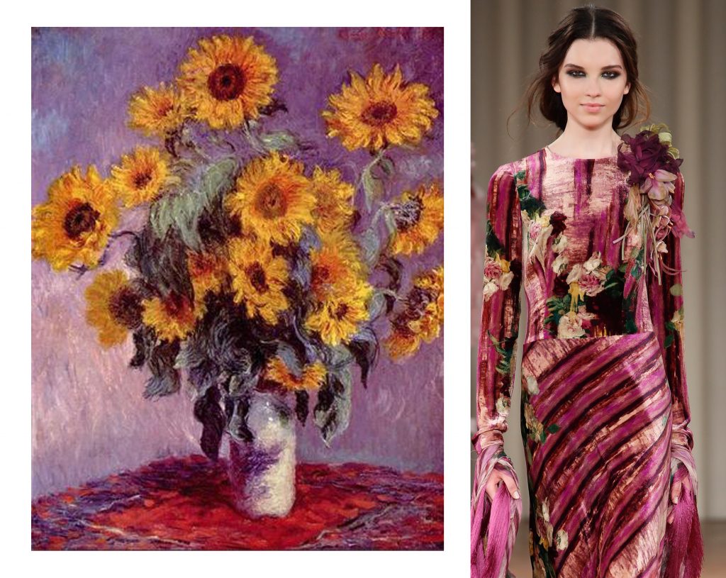 Natura morta con girasoli 1881 di Monet – dx abito Alberta Ferretti